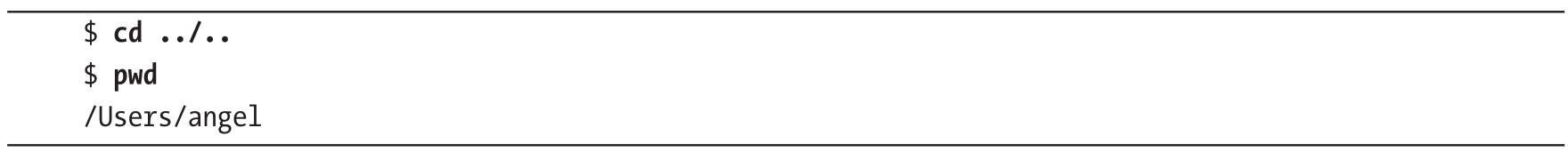 上面两个更改目录的cd命令,使用的是相对路径。相对路径(relative path)是指相对于当前位置的路径。例如,如果想使用相对路径来更改目录,我们只需要这样写:
