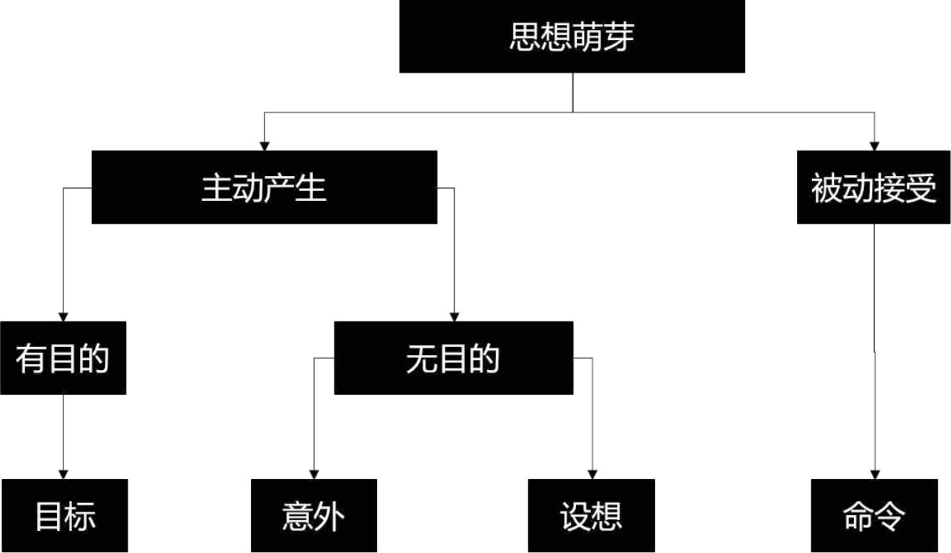 诞生分为主动产生和被动接受两种方式。主动产生一般源于一位或多位制作者的目标或设想,甚至还可能来自一次意外。其中,目标主要是有目的的行为,而意外和设想主要是无目的的行为。但无论如何,它们都是制作者主动产生的思想萌芽。被动接受则一般只源于命令。