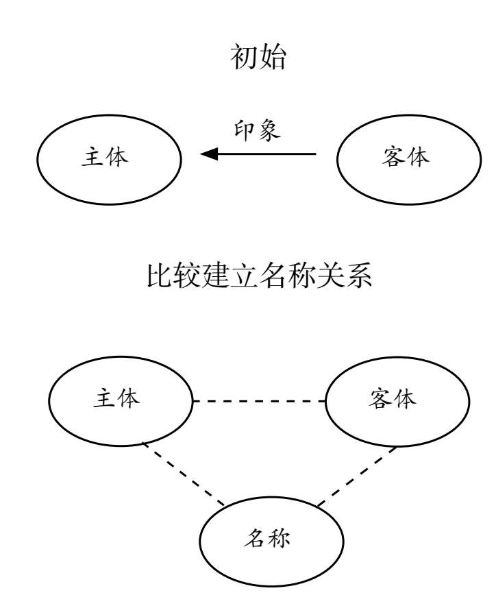 图2-2 主体与客体之间建立名称(概念)的关系示意图