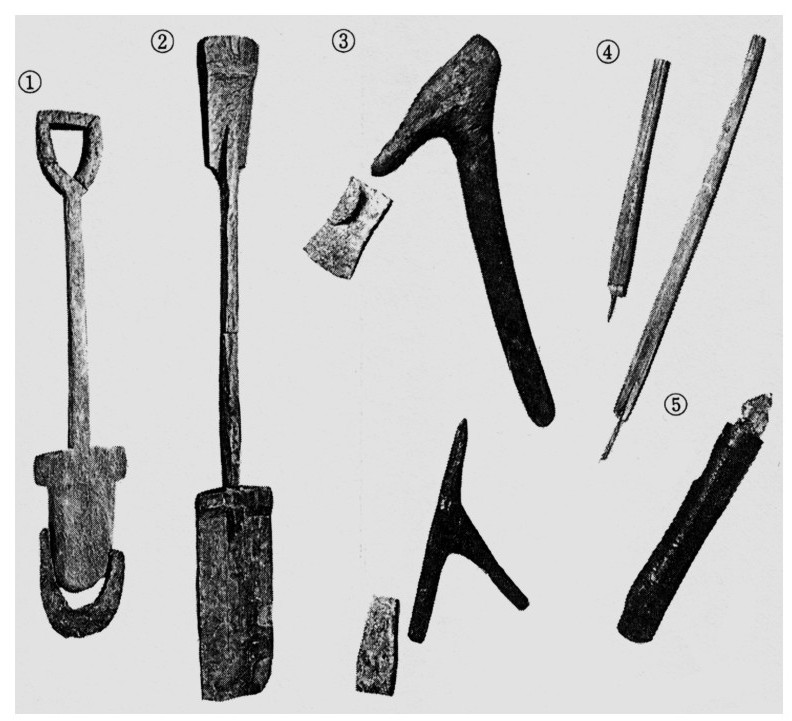 1941年,京都帝国大学考古学教研室通过对奈良先唐古遗址的发掘,发现了各种弥生式陶器和木制农具、容器。由于那些木器不仅留有刃器加工的痕迹,而且在推断为弥生前期的鹿角刀的刀柄上,还附有铁锈痕迹,因此开始引起学术界对当时是否存在铁器的疑问。这一疑问在1955年得到解答:这一年,在熊本县斋藤山贝冢属于弥生前期的贝层中,出土了一把铁斧。之后不久,又在长崎县原辻唐原两个遗址,发现了大量属于弥生时代的铁器。这些考古发现使弥生时代基本上已经出现铁器的观点得以确认。