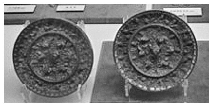 继弥生式陶器之后被发现的是铜器。1917年,福冈医科大学教授中山平次郎,在福冈县板付遗址田端地区的弥生陶器的坛子里,发现了一些铜剑、铜矛。根据这一重要发现,他在当年的《考古学杂志》第8卷,发表了一篇论文,题目是《论九州北部先史时代和原始时代两个时代中间期的遗物》。他在这篇论文中不仅明确提出了铜剑、铜矛在弥生时代已经出现的观点,而不是如以前人们所认为的那样,铜剑、铜矛最早产生于古坟时代的观点,而且认为弥生时代是石器时代向金属时代过渡的“中间时代”。