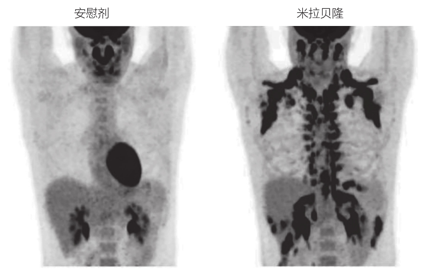波士顿加斯林糖尿病中心的研究人员发现了一个测试米拉贝隆是否能激活棕色脂肪的机会。他们对12名20岁出头的苗条、健康的男性进行了临床研究。研究人员将研究对象暴露在低温下,然后进行PET扫描来寻找彩色信号,证实了他们确实有棕色脂肪。然后,研究人员测量了他们的基础静息代谢率。