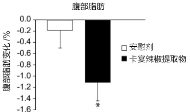 图3.5 摄入安慰剂和辣椒提取物的受试者的腹部内脏脂肪变化对比