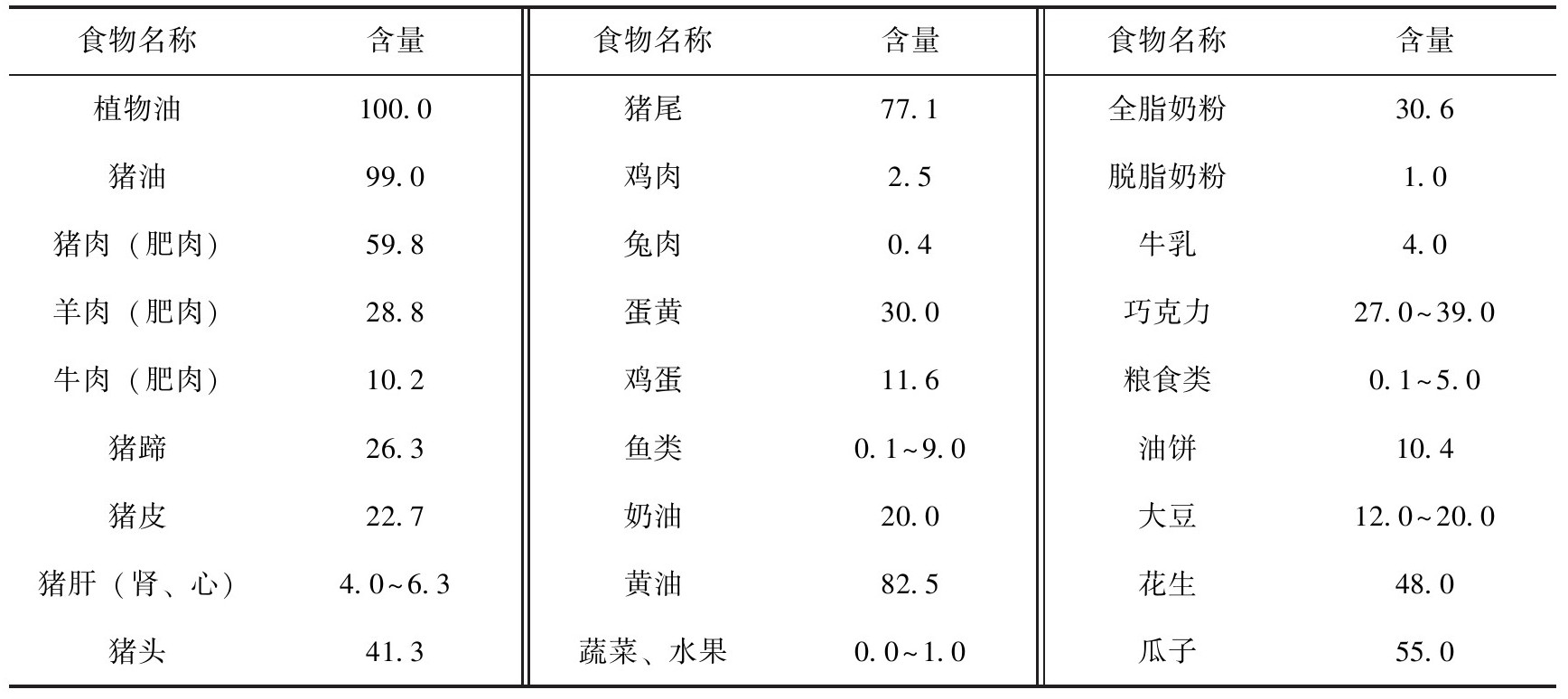 表3-7 常见食物的脂肪含量
