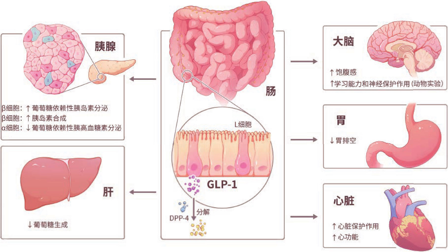 图3-6 GLP-1的作用机制与2型糖尿病缓解