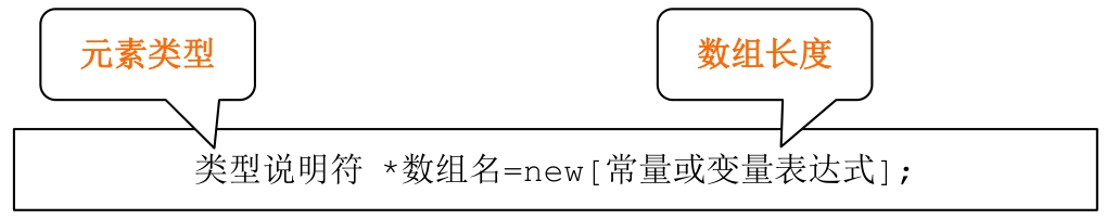 动态定义数组指在程序运行过程中动态分配内存空间且定义数组。一维数组的动态定义格式如下图所示。