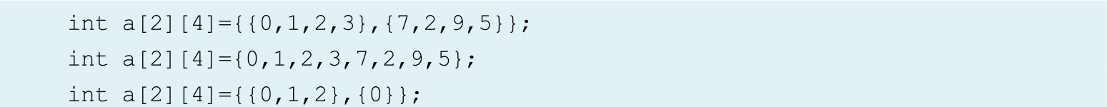 ●在定义数组时可以对数组进行整体赋值,在其他情况下不可以对数组进行整体赋值。