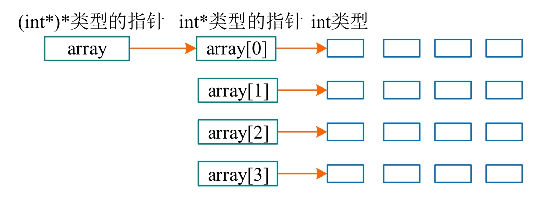 一个 m 行 n 列的二维数组相当于 m 个长度为 n 的一维数组。