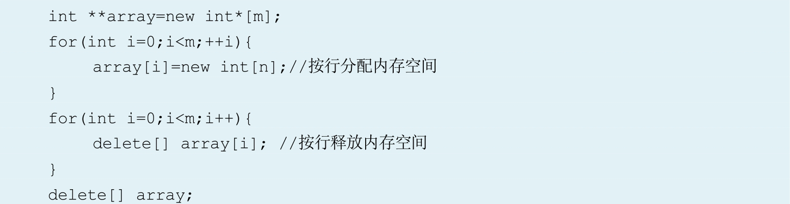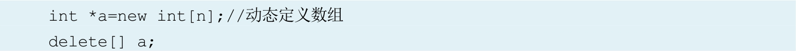 对于动态定义数组,在使用完毕后需要使用delete释放其占用的内存空间,格式:delete[]数组名。