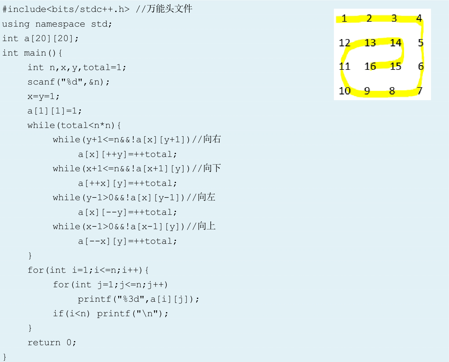 训练18(P5731): 蛇形填数,输入一个不大于9的正整数 n ,以蛇形填写 n × n 的矩阵。