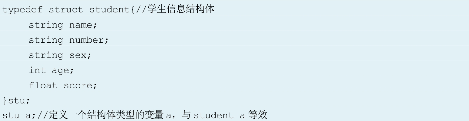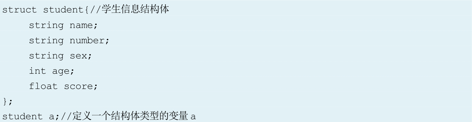 在程序设计过程中,经常需要将多个数据项组合在一起作为一个数据元素。例如,一个学生的信息包括姓名、学号、性别、年龄、分数等。此时可以将学生的信息定义为结构体类型。