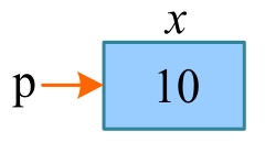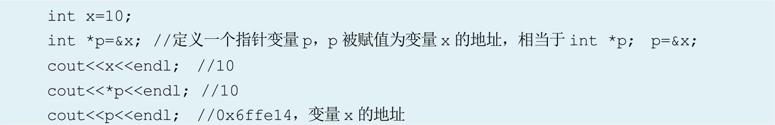 定义一个指针变量p,p存储变量 x 的地址。*p表示取地址中的内容。