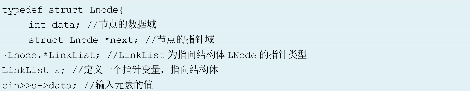 在定义单链表时,每个节点都包含两个域:数据域和指针域。数据域存储数据元素,指针域存储下一个节点的地址,指针指向结构体类型。