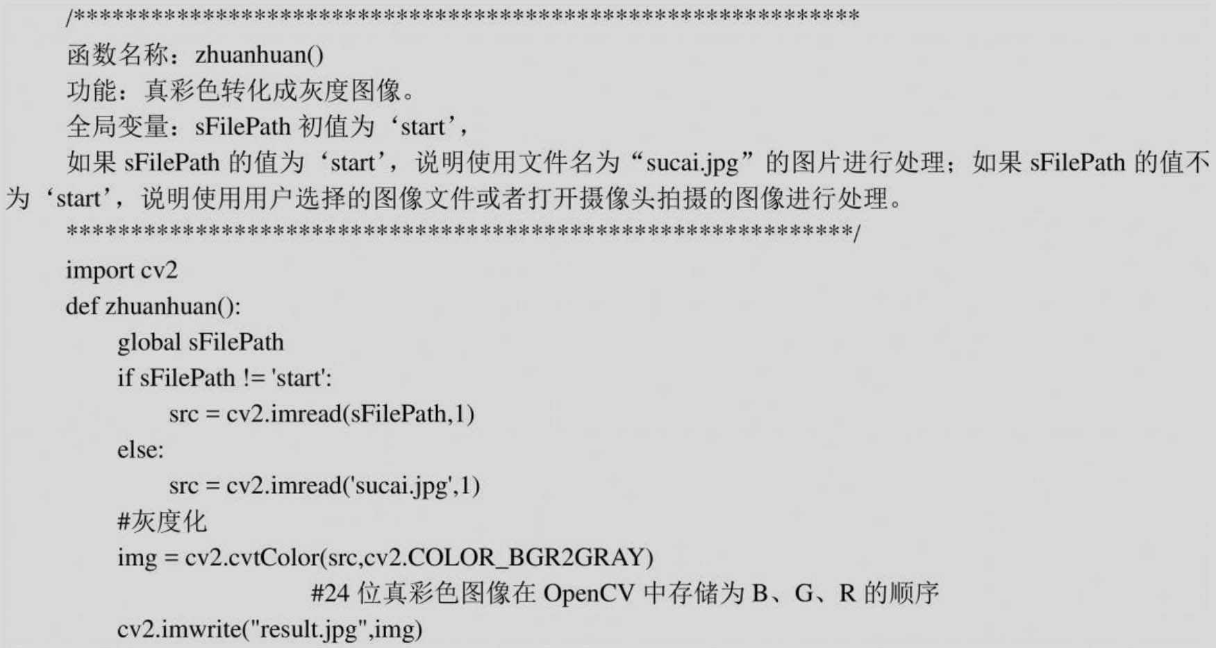 (2)在OpenCV中,cv2.cvtColor()函数用于实现色彩空间的转换,其一般格式为: