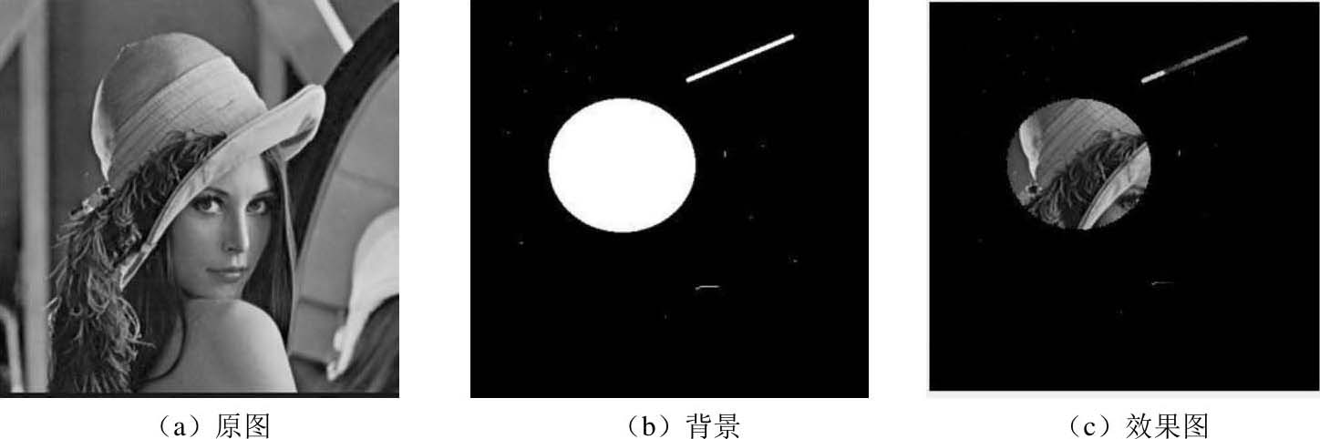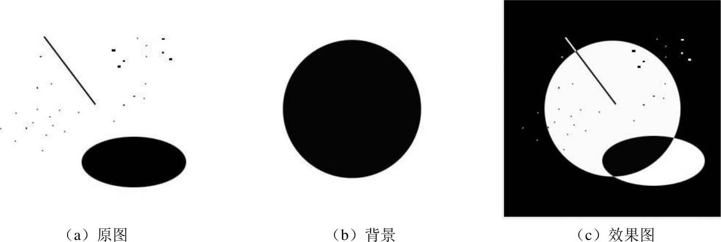 位与运算效果图如图3-3所示。可以通过位与运算提取掩模图像(二进制图像)中感兴趣的区域,按位逻辑运算可以用于图像分割,提取感兴趣的目标。