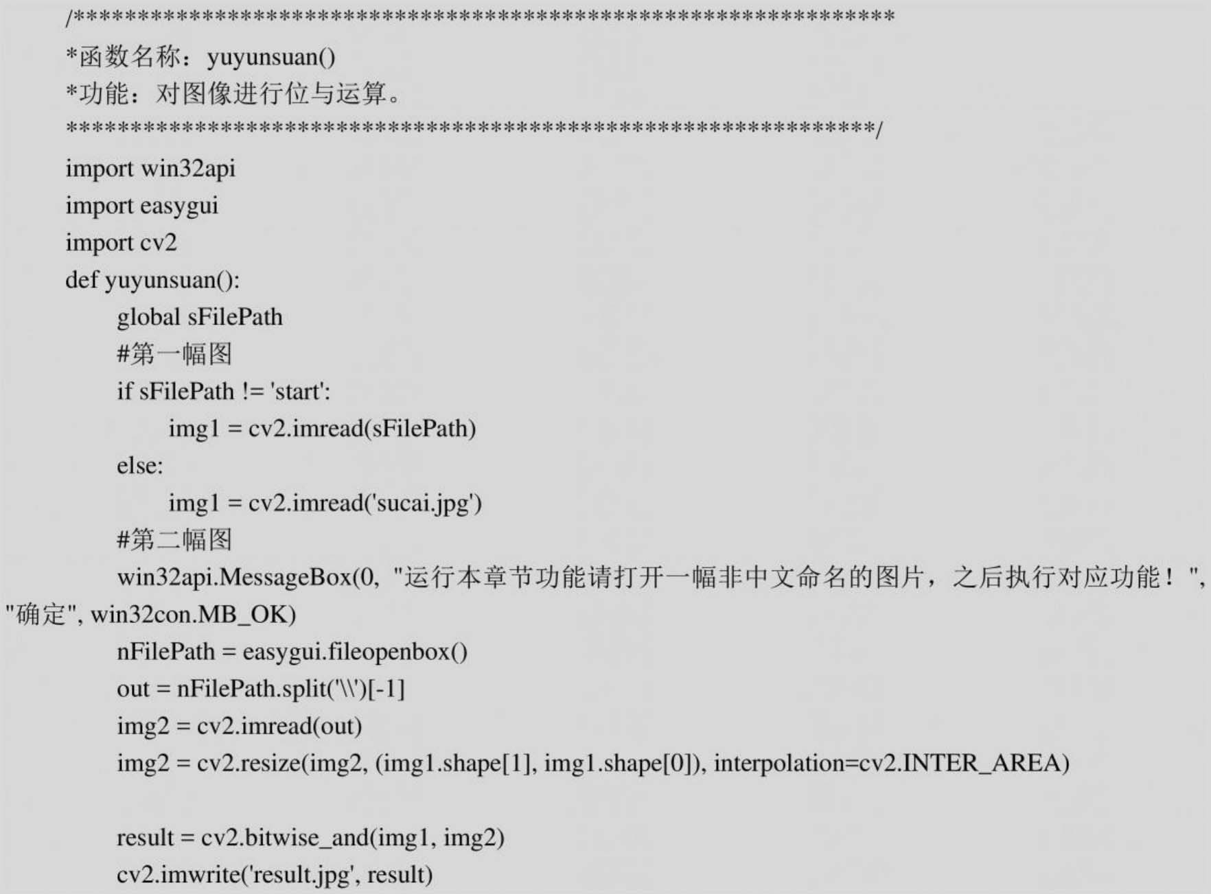 在OpenCV中的cv2.bitwise_and()函数用于进行位与运算,其一般格式为: