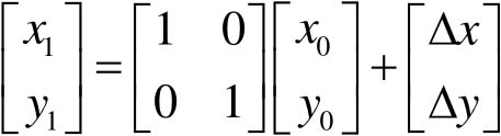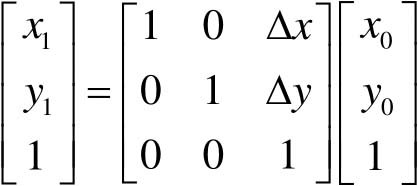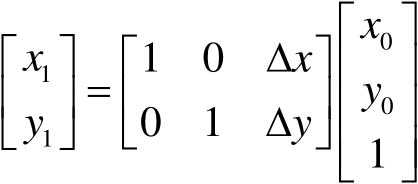 根据矩阵相乘的规律,在坐标列矩阵[ x y ]中引入第三个元素,扩展为3×1的列矩阵[ x y 1],可实现平移。