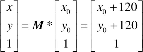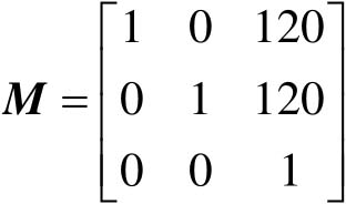 当想将原始图像向右下移动120个像素时,可以用转换矩阵 M 表示为: