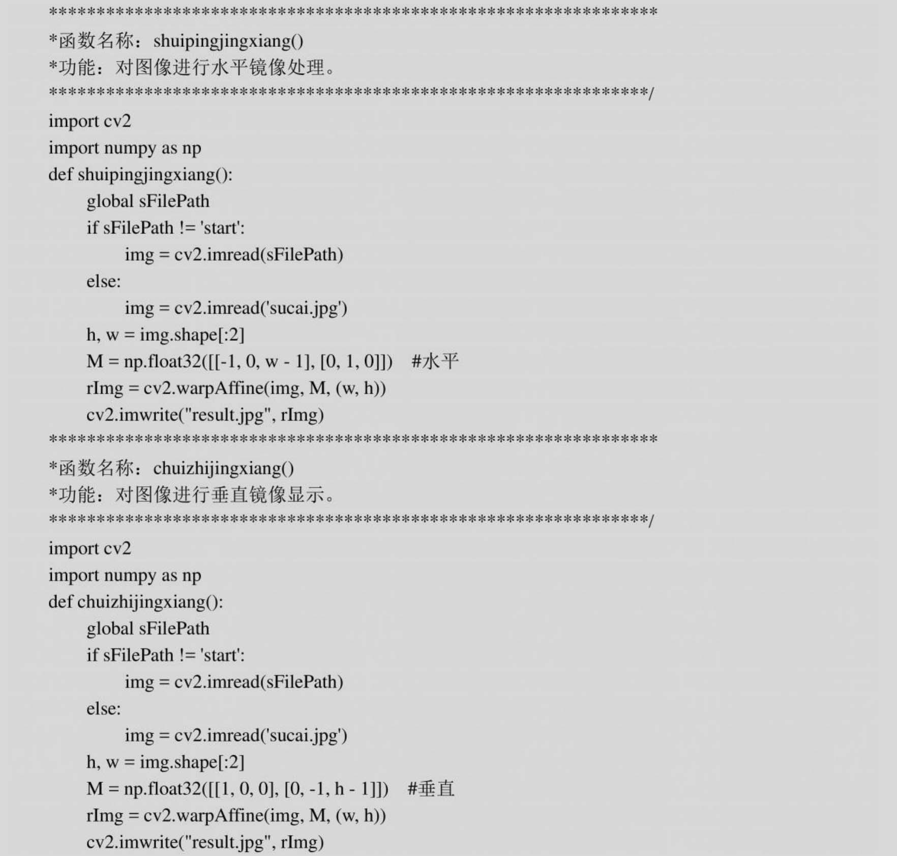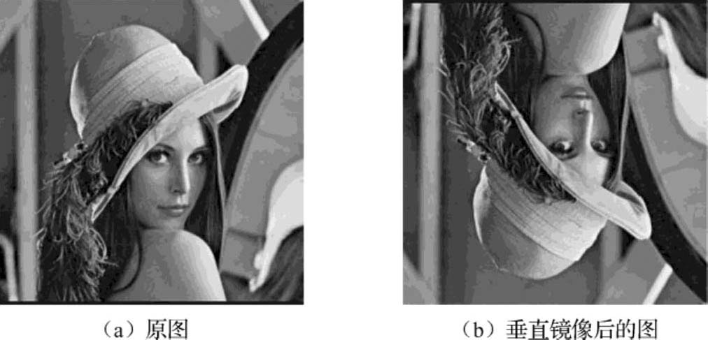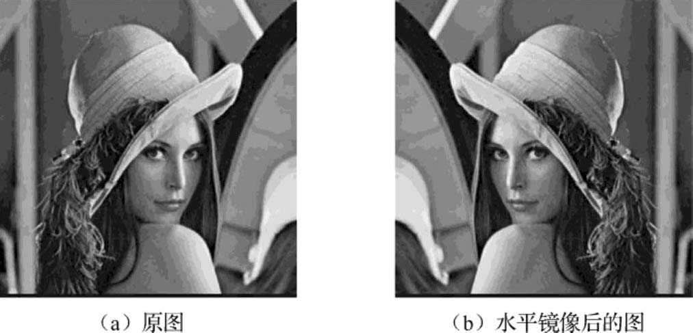 图像的镜像变换分为两种:一种是水平镜像,另一种是垂直镜像。图像的水平镜像操作以原图像的垂直中轴线为中心,将图像分为左右两部分进行对称变换;图像的垂直镜像操作以原图像的水平中轴线为中心,将图像分为上下两部分进行对称变换。镜像变换后图像的高和宽都不变。