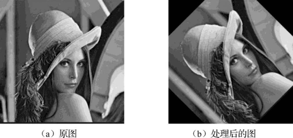 图像的旋转变换效果如图4-12所示。左侧为原始图像,右侧为处理后的图像。