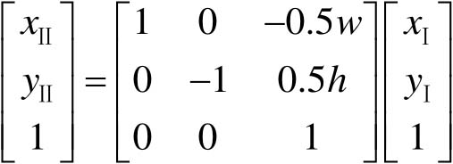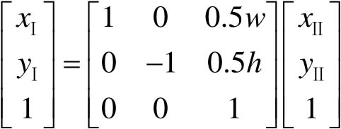 上述旋转是绕坐标轴原点(0,0)进行的,向右为 x 轴正方向,向上为 y 轴正方向,不妨设其为坐标系Ⅱ;而屏幕中的坐标一般以左上角为原点,向右为 x 轴正方向、向下为 y 轴正方向,设其为坐标系Ⅰ。如果是绕一个指定点( a , b )旋转,则先要将坐标系平移到该点,再进行旋转,然后平移回新的坐标原点。