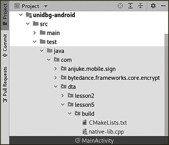 打开Android Studio,将src/main/cpp目录下的native-lib.cpp与CMakeLists.txt文件放到lesson5/build目录下,如图3—14所示。