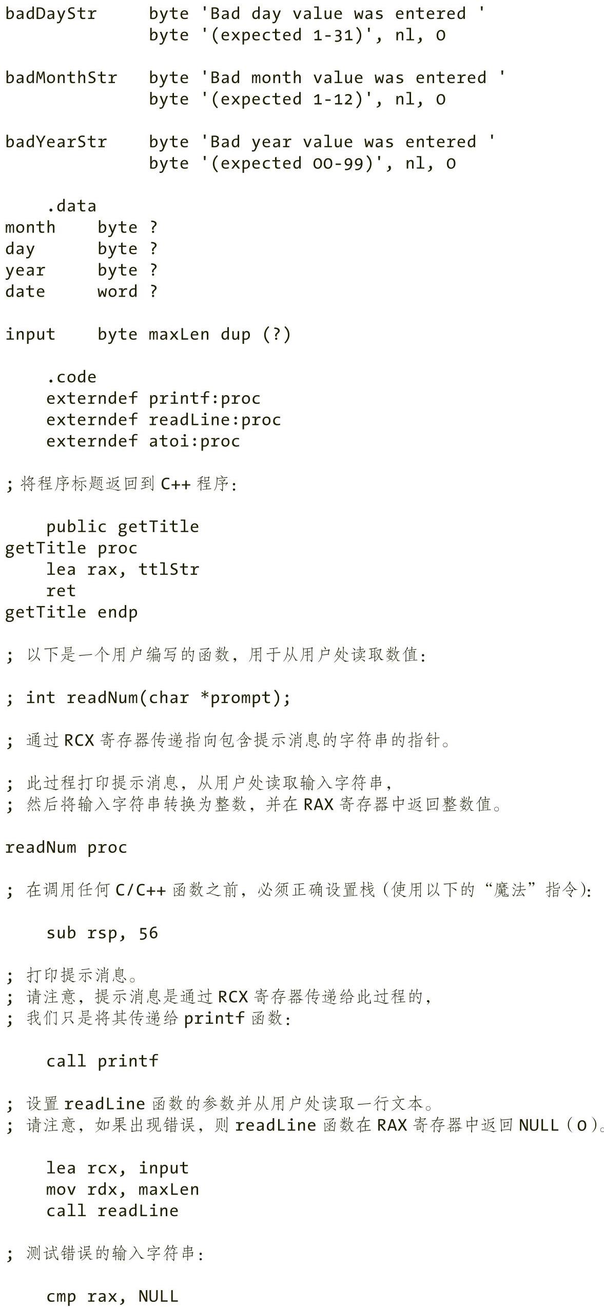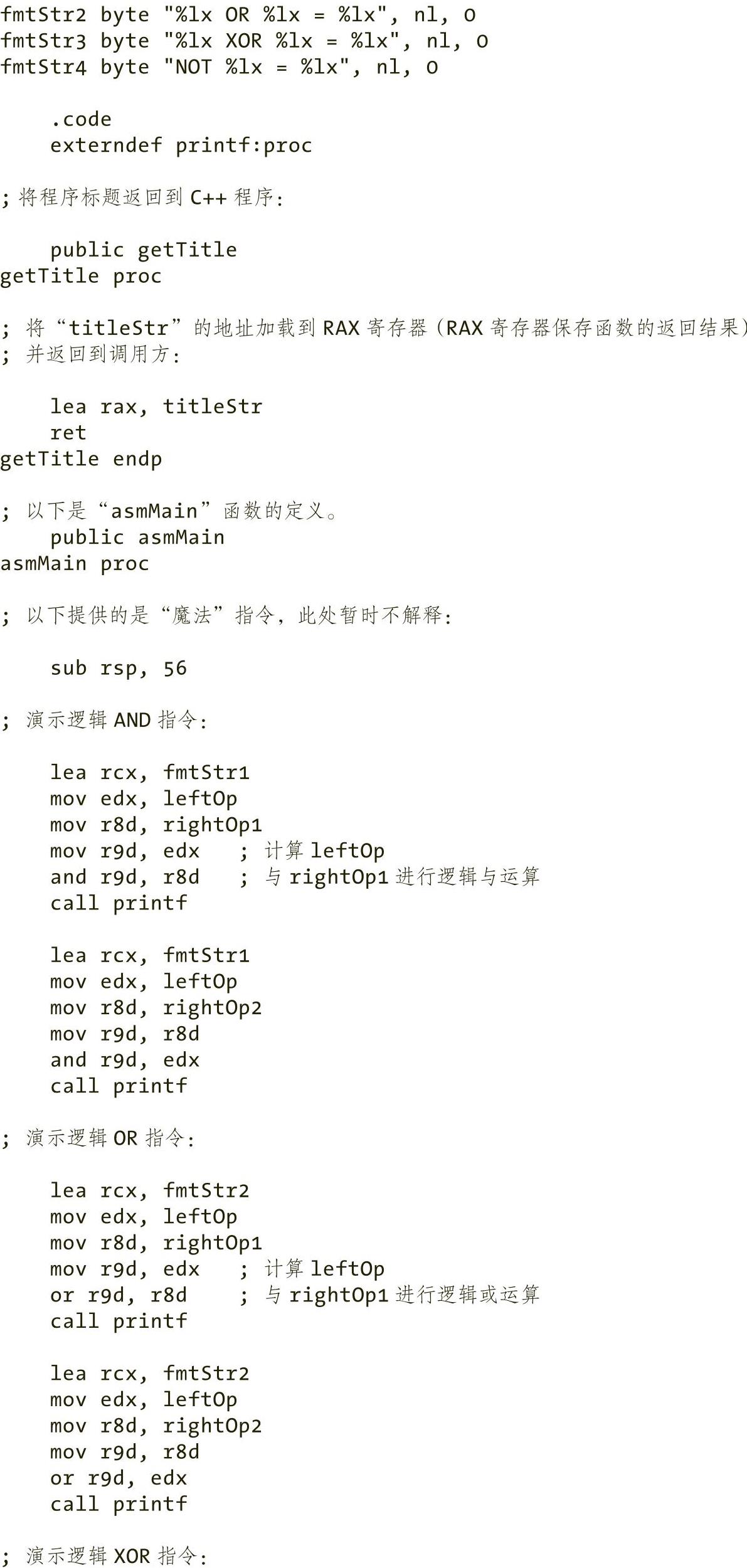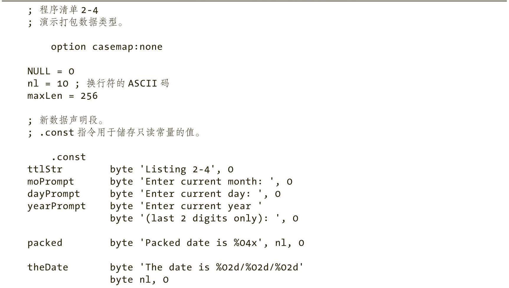 纯汇编语言没有通用的打印或者输出函数,可以调用打印或输出函数在控制台上将数字量显示为字符串。我们可以编写自定义的过程来处理这个显示过程(本书稍后将讨论其中的一些过程)。目前,本书中的MASM代码依赖于C标准库的printf()函数来显示数值。请阅读程序清单2-1中的程序,该程序将各种数值转换为其等价的十六进制数值。
