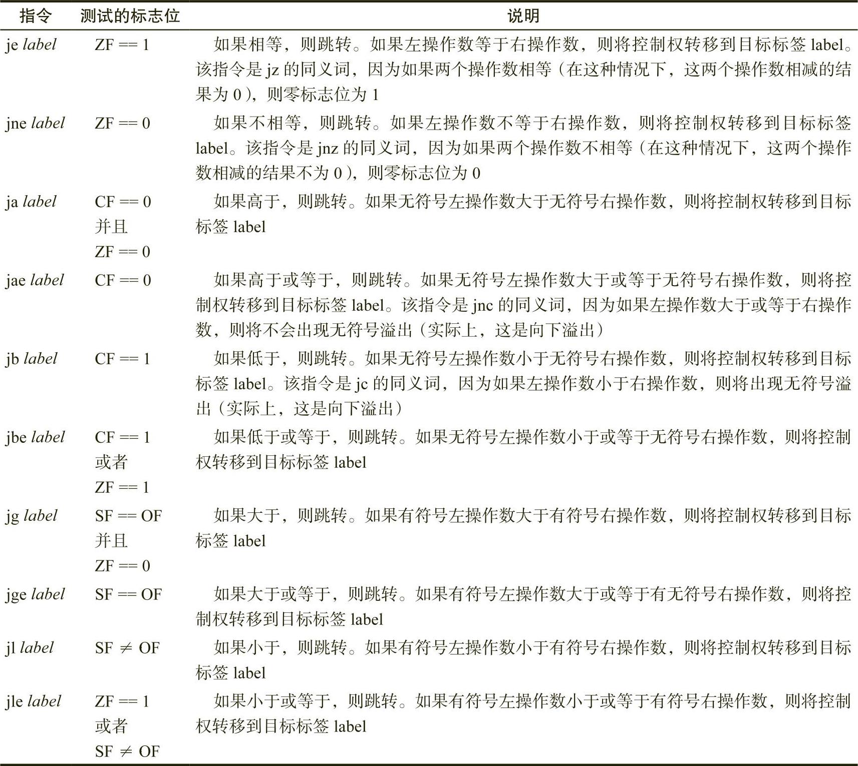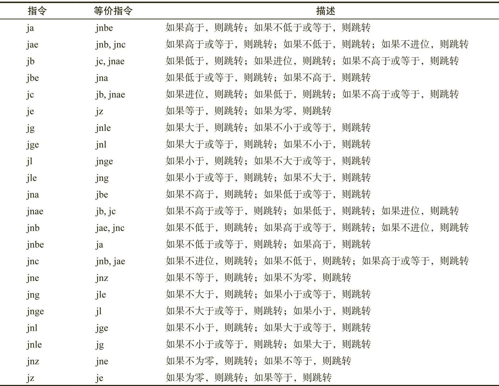32.哪些条件跳转指令是基于无符号比较结果实现传输控制的?