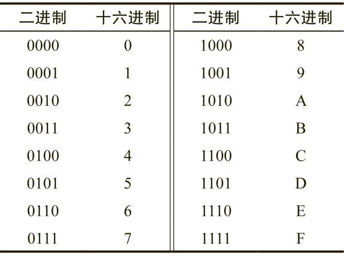 因为十六进制数和二进制数之间的转换是一个需要反复执行的操作,所以建议读者花点时间牢记其转换表(表2-1)。即使可以使用计算器进行转换,我们也会发现,在进行二进制数与十六进制数之间的转换时,手工转换会更快速,也更便捷。