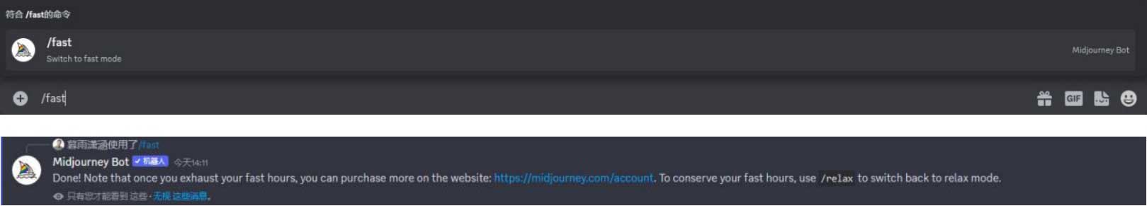 在输入框中输入“/turbo”、“/fast”或“/relax”指令可快速切换出图模式,如图2-43所示。