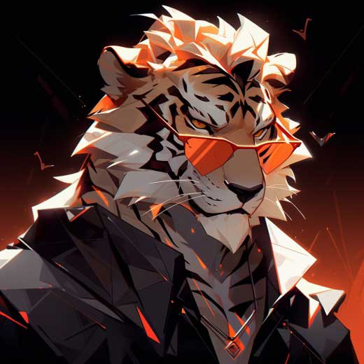 使用一幅老虎图像(见图2-8)作为参考垫图,Midjourney在Niji模型下绘制的老虎如图2-9所示。因为垫图为动漫图像,所以使用Niji模型生成的图像与垫图相似度会更高。