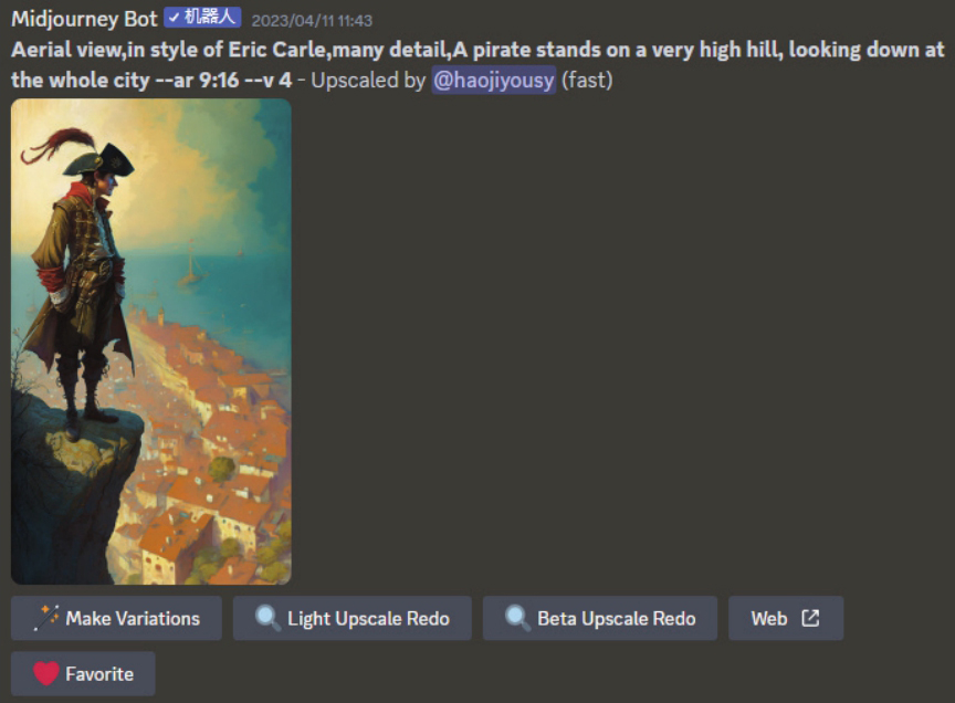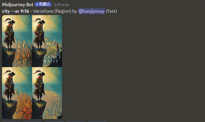 /imagine命令是Midjourney中最重要的命令,在Midjourney的命令提示行中找到或输入此命令后,在其后输入提示语,即可得到所需的图像,如下图所示。