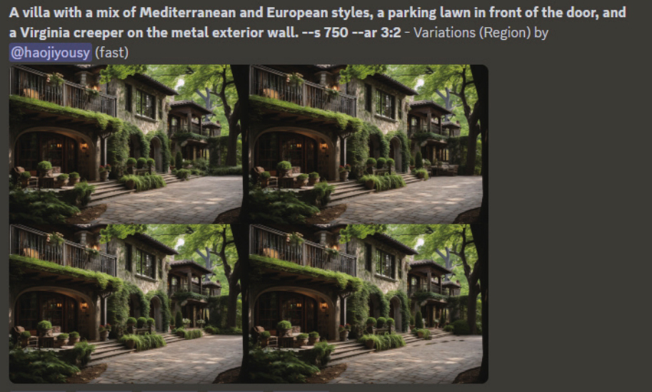 但使用Midjourney局部重绘功能后,处理手段就会简单许多,只需让Midjourney针对用户指定的局部进行再次生成即可。