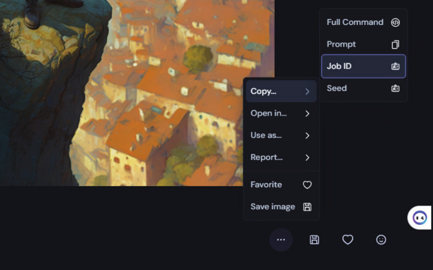 按钮,再执行Copy→Job ID命令,复制生成这幅图像的完整ID,如右图所示。