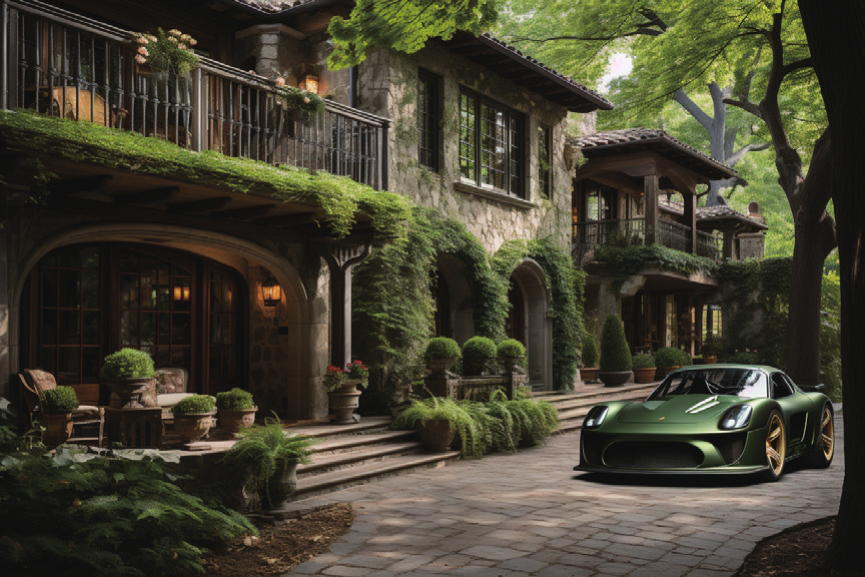 例如,如下左图所示为有古董车的原图,经过局部重绘后,可以在保持其他区域不变的情况下,将汽车更换为绿色的跑车,如下右图所示。