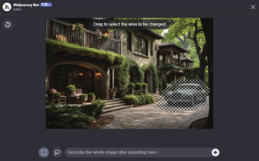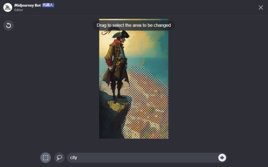 05 单击Vary(Region)按钮,在对话框中输入新的提示词,并画出要重绘的区域,如右图所示。