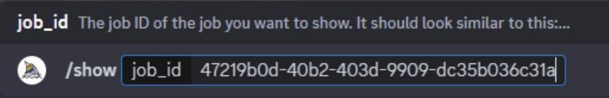 03 返回Midjourney命令输入行,输入/show命令,并在其后面粘贴第2步拷贝的任务ID,如右图所示。