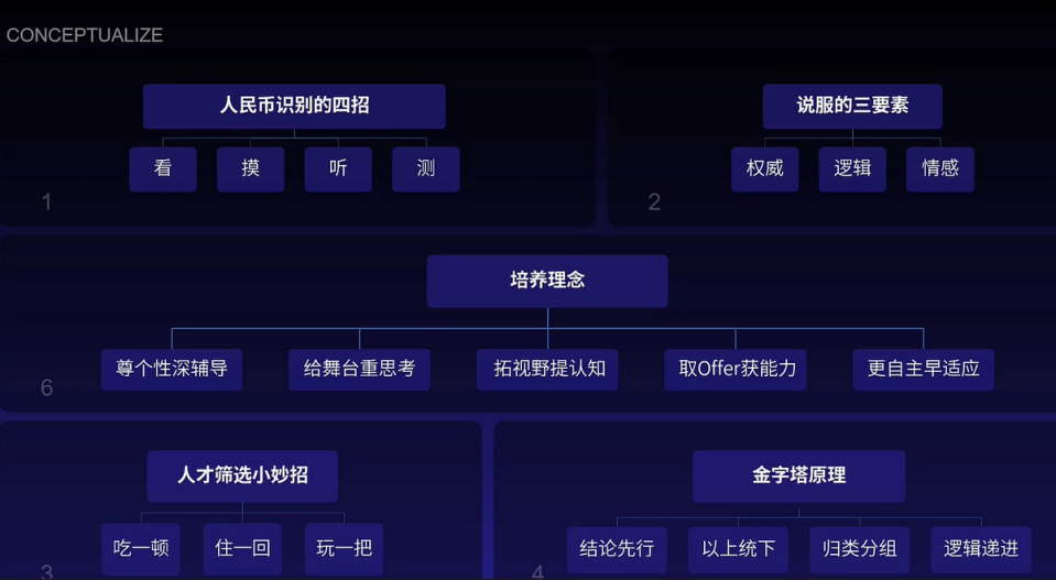 PPT中内容加工的第一个技术,我们称其为提概念。
