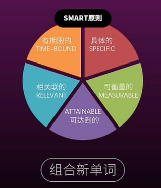 目标必须是具体的、可衡量的、可达到的,且与工作相关联、有时间期限,而对应的这5个英文单词的首字母连在一起,刚好组成了一个新的单词SMART,SMART又是聪明的意思。