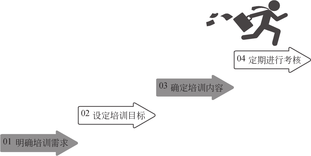 企业既要从宏观角度出发明确供应链数字化转型战略,又要从微观角度出发分析各部门员工需要提升的工作技能,并为其制订相应的培训计划,使员工尽快适应新的工作流程,提高全链工作效率。具体来说,企业培训供应链员工可遵循以下4个步骤,如图3-4所示。