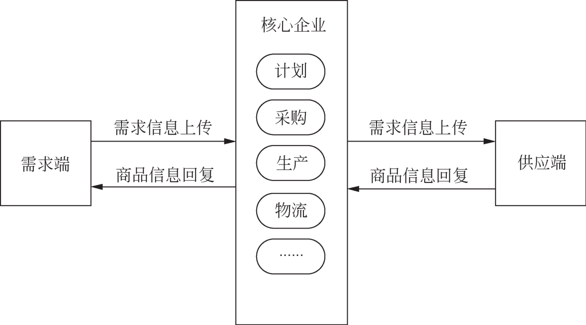 需求信息在供应链上正向传递的最后一环是供应商。供应商按照核心企业的计划和指示准备原料,将商品信息(如供应数量、生产周期等)逆向传递给核心企业,各部门领料生产,完成产品加工、仓储、运输等工作。最终用户签收,完成交货。至此,供应链信息完成流动,价值创造过程完成。