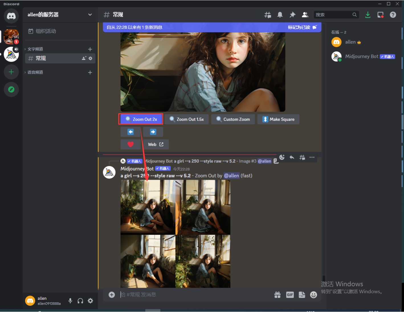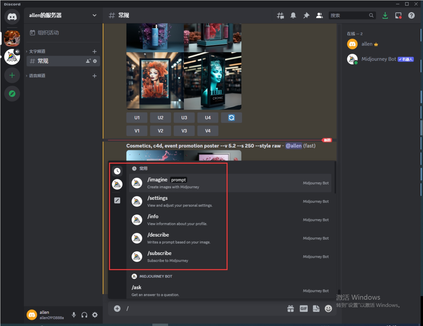 (1)在描述语输入框中输入/imagine,在输入前几个字母时,输入框会自动弹出完整的命令,选择