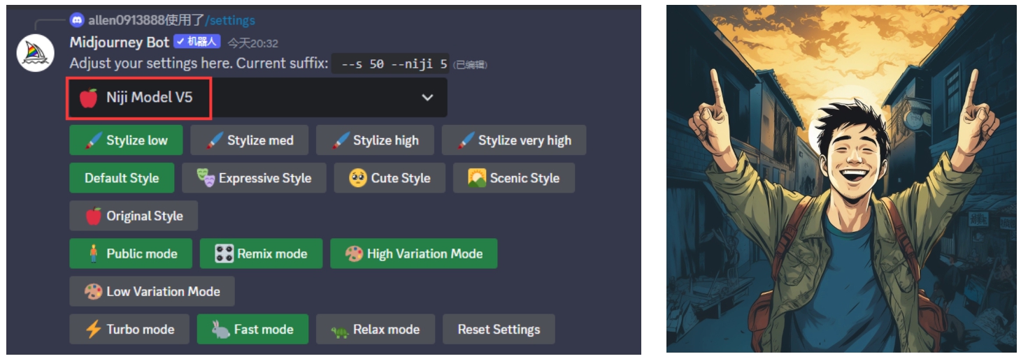 从上一节的图像可以看到,图像的默认效果是写实的插画风格,细节比较多。Midjourney预设了几种不同的绘制风格可以选择。