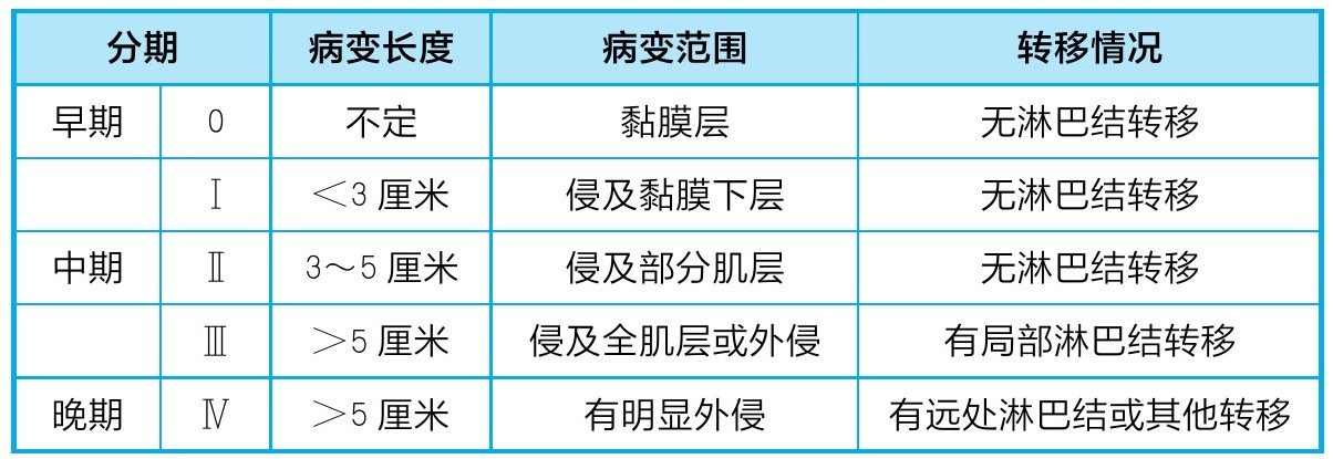 准确的分期是选择合理治疗方法、预后评价、不同治疗方法疗效比较及其诊治信息交流的基本工具。1976年,我国食管癌工作会议制定了食管癌临床病理分期,见表1。