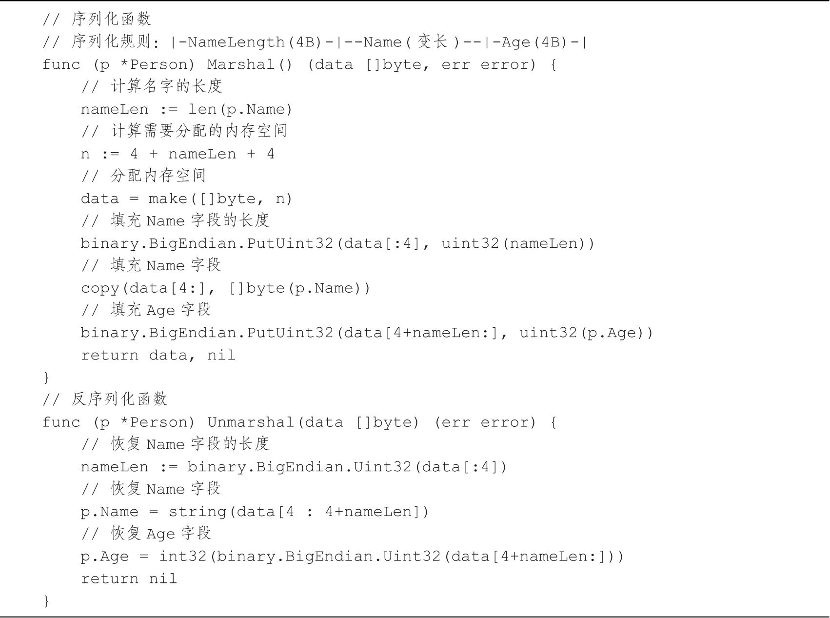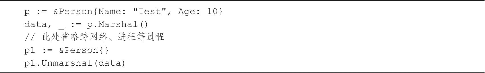 代码清单2-6展示了如何实现Person结构体自定义的序列化和反序列化。