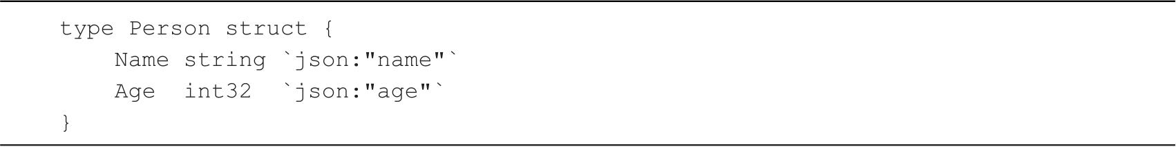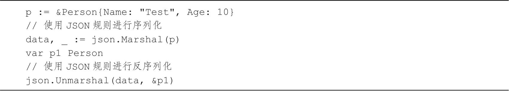 代码清单2-5 Person结构体使用JSON序列化和反序列化