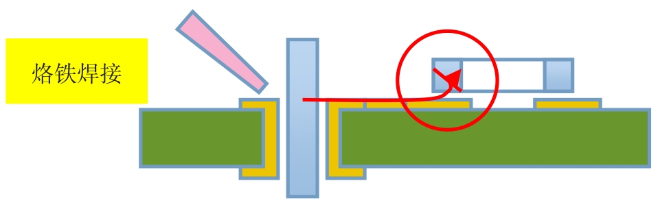 烙铁焊接属于典型的热冲击型焊接工艺。片式电容的陶瓷体恰恰是良性的导热体,烙铁焊接时会把它加热,焊接完成后冷却过程中陶瓷体会因片式电容的收缩而产生很大的拉应力,最终会导致电容开裂。