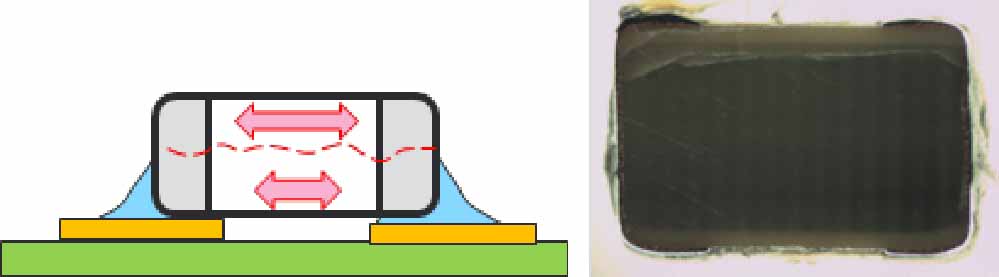 图3-33 热应力导致的片式电容失效现象