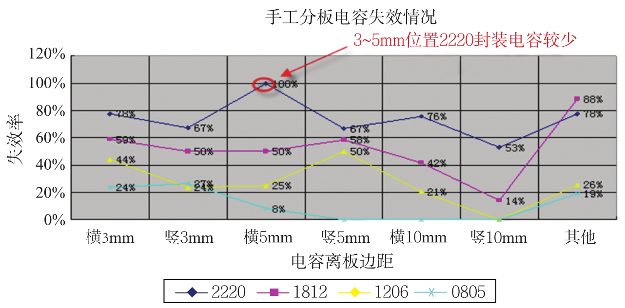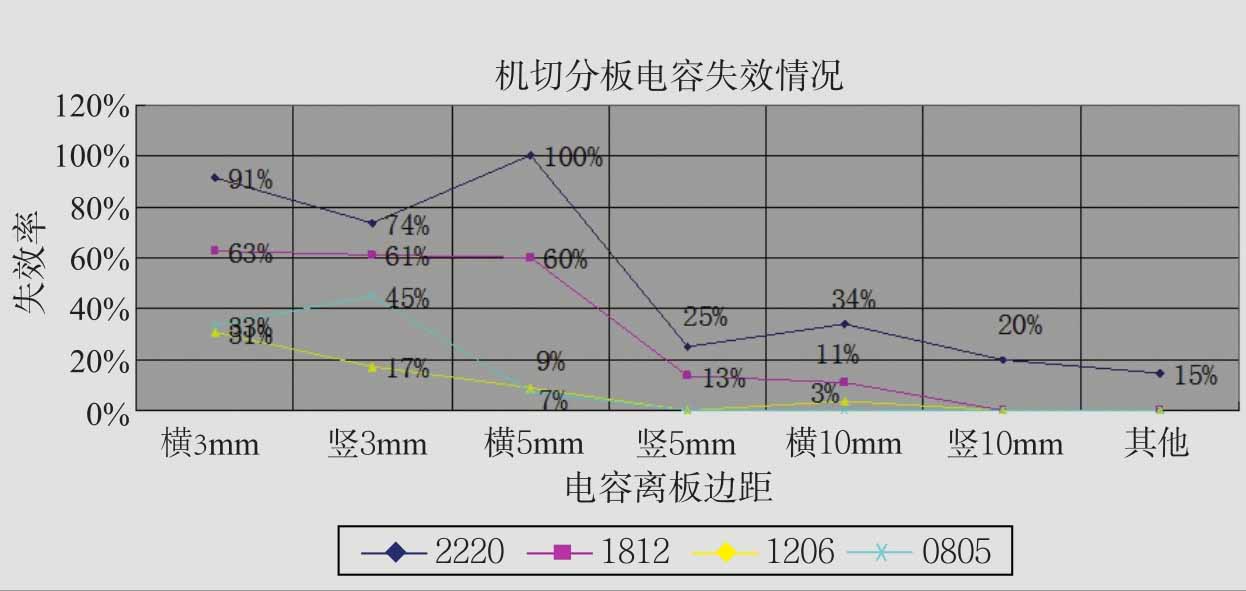 图3-31 机切分板时布局距离对片式电容失效率的影响