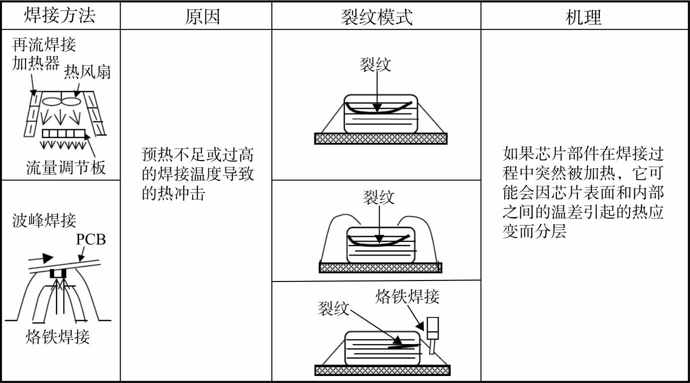 图3-35 波峰焊接导致片式电容热开裂的机理